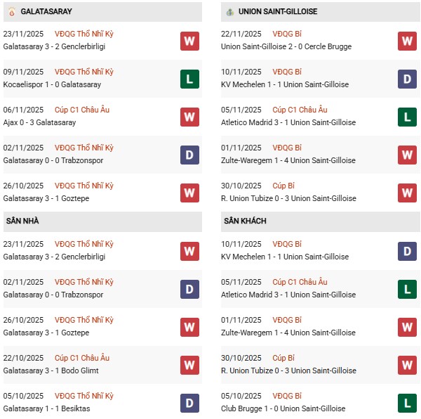 Với những gì đã thể hiện, Galatasaray có lý do để tự tin bước vào trận đấu với Union Saint-Gilloise sắp tới. Phải nhấn mạnh rằng, đây là trận đấu mà đại diện của Thổ Nhĩ Kỳ có lợi thế sân nhà. Theo thống kê, đoàn quân của HLV Okan Buruk đang trải qua mạch 20 trận bất bại tại sào huyệt của mình, trong đó họ giành 14 chiến thắng.