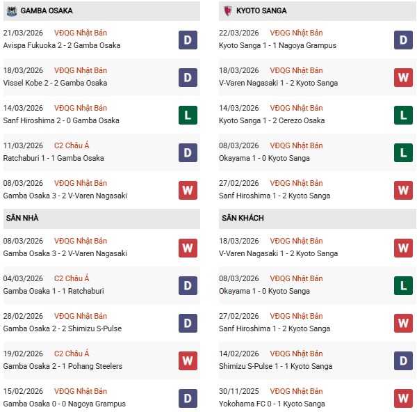 Tuy vậy Gamba Osaka lại nằm trong số 1/4 đội chủ nhà hiếm hoi đánh bại được Kyoto Sanga tại J1-League 2025. Thêm nữa từ đầu J1-League 2026, Gamba mới chơi 3 trận tại sào huyệt Suita và chưa thua sau 90 phút: hòa Nagoya ngang cơ, suýt thắng hai trận còn lại gặp đối thủ dưới cơ nếu như không để Shimizu S-Pulse lật ngược thế trận trong những phút cuối (ghi liên tiếp hai bàn vào phút 83 và 86).