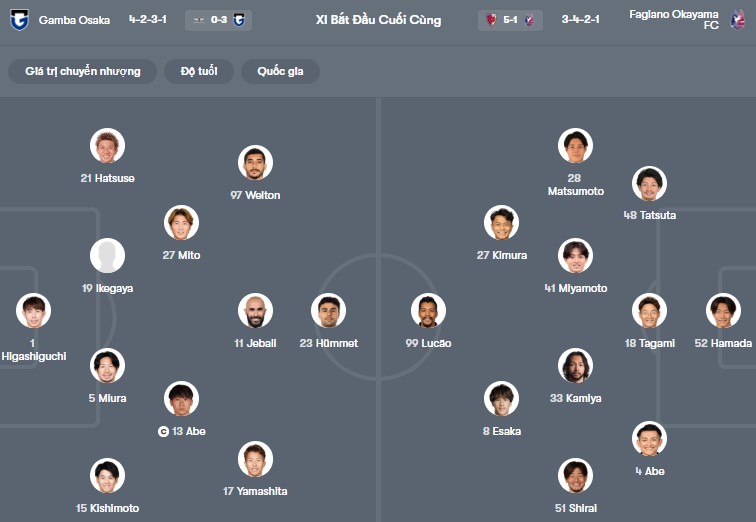 - Trên sân nhà, Gamba Osaka thắng 1, thua 1 trước Okayama.