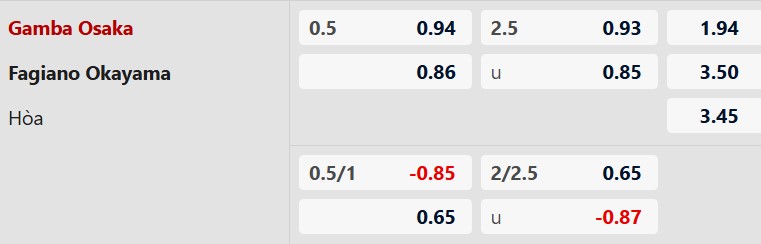 Mức chấp 1/2 bàn được xem là khá "thơm" cho những ai tin tưởng vào đội chủ nhà. Xét về cả thực lực, vị trí trên bảng xếp hạng lẫn phong độ hiện tại, Gamba Osaka đều vượt trội hoàn toàn so với một Okayama đang rệu rã. Việc vừa giành chiến thắng đậm tại đấu trường châu lục sẽ tiếp thêm sức mạnh tinh thần cực lớn để họ hướng đến 3 điểm.