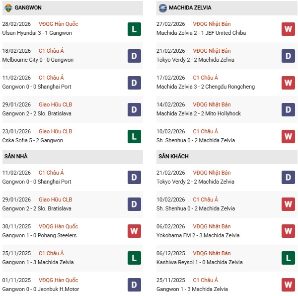 Ở chiều ngược lại, Machida Zelvia trải qua chuỗi trận thất thường khi thua Kyoto và Kashima nhưng có chiến thắng đáng chú ý trước Cerezo Osaka. Đại diện Nhật Bản thường triển khai bóng có tổ chức, giữ nhịp độ vừa phải và chờ đợi cơ hội phản công. Với nền tảng chiến thuật kỷ luật, Machida có thể khiến Gangwon gặp khó trong việc tạo ra nhiều cơ hội rõ rệt.