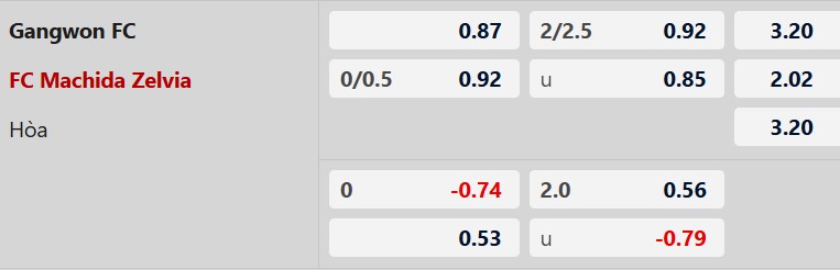 - Gangwon thua 1-3 trước Machida Zelvia ở vòng Phân hạng mùa giải này.