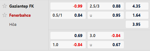 Đương nhiên Fenerbahce với tầm vóc của mình vẫn phải là đội được đánh giá cao hơn nhiều cùng mức kèo 3/4 bàn. 10 lần chạm mặt gần nhất, Fenerbahce thắng 9 trận và chỉ 1 lần bị cầm hòa. Thực tế, dù Gaziantep đang chơi tốt nhưng với chất lượng nhân sự vượt trội, cơ hội giành trọn 3 điểm của đội khách vẫn là nhỉnh hơn.
