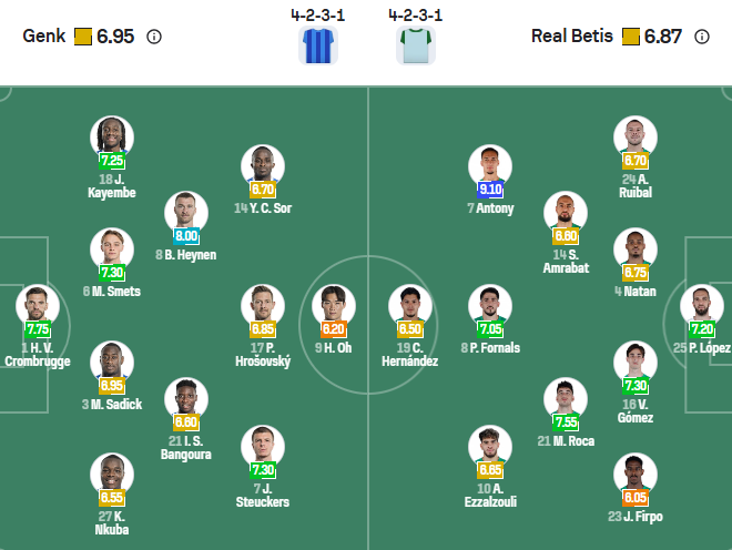 Đối đầu với đội bóng mạnh hơn là Real Betis, mục tiêu của Genk vẫn là 3 điểm tuyệt đối khi họ được đá trên sân nhà. Dẫu vậy bản thân Genk chưa có sự chuẩn bị tốt nhất, họ mới có chuyến làm khách trước đối thủ dễ thở mà không thể giành được chiến thắng.