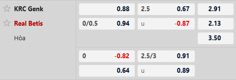 5 trận gần nhất hàng công của Genk đang tạo ra trung bình 1.4 bàn thắng 1 trận. Bên phía Betis thì đội bóng Tây Ban Nha thi đấu ổn hơn với trung bình 2 bàn thắng được tạo ra trong 5 trận gần nhất. Với số lượng pha lập công mà 2 đội đang tạo ra, trận đấu tới được cho là sẽ có nhiều bàn thắng xuất hiện. Khả năng 2 đội ghi bàn là rất cao, tổng số bàn thắng sẽ lớn hơn 3.