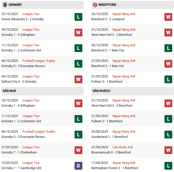 - Trên sân nhà, Grimsby thắng 1, thua 2 trước Brentford.