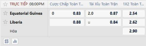 Mức kèo hòa được thua xuất hiện ở trận đấu này. Hai đội từng đối đầu 6 lần trong quá khứ, Guinea Xích Đạo thắng tới 4, hòa 1 và chỉ thua 1 trận. Nhưng với việc Guinea Xích Đạo đang gặp nhiều vấn đề về động lực thi đấu, khả năng thắng của Liberia sẽ cao hơn. Chọn Liberia cả trận.