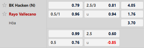 Chỉ là đội bóng tầm trung ở La Liga nhưng công bằng mà nói, đẳng cấp của Rayo Vallecano vẫn trội hơn chủ nhà Hacken 1 bậc. Do đó, dễ hiểu khi đội bóng Tây Ban Nha đang được đánh giá cao hơn khá nhiều với tỷ lệ chấp 3/4 bàn. Phải hành quân đến Thụy Điển nhưng nếu chơi tốt như giai đoạn gần đây, cơ hội để Rayo Vallecano đem về 3 điểm trọn vẹn là rất rõ ràng.