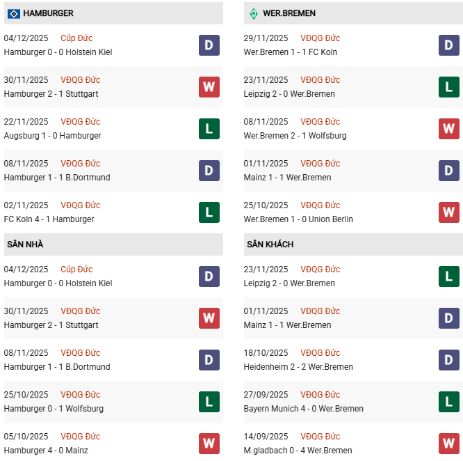 - Trên sân nhà, Hamburg thắng 5, thua 3 trước Werder Bremen.