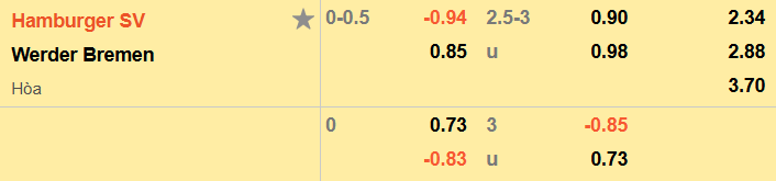Chẵn bàn thắng: 6/10 trận gần nhất của Hamburg có tổng bàn thắng chia hết cho 2. Ngoài ra, 7/11 trận vừa qua của Bremen chứng kiến điều tương tự. Ngoài ra, 6/10 trận gần nhất Hamburg tiếp Bremen trên sân nhà có tổng bàn thắng chẵn.