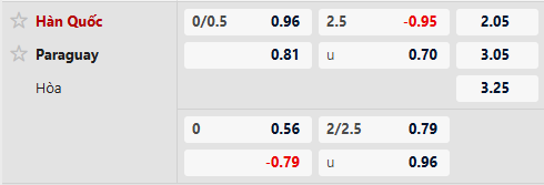 Trong 5 trận đấu gần nhất của Hàn Quốc, đã có tổng cộng 14 bàn thắng được ghi (trung bình 2,8 bàn/trận), trong khi con số của Paraguay là 8 bàn (trung bình 1,6 bàn/trận). Nhìn vào 5 trận đối đầu gần nhất giữa hai đội, chỉ có tổng cộng 9 bàn thắng được ghi (trung bình 1,8 bàn/trận). Dựa trên số liệu này, khả năng trận đấu có dưới 3 bàn thắng là rất cao.