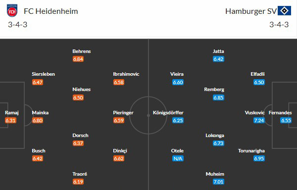 Thực ra tháng 10 năm ngoái, Heidenheim từng thua chính ... Hamburger tại sào huyệt khi đôi bên đụng độ ở Cúp quốc gia và hôm ấy đôi bên cũng được đánh giá ngang cơ. Tuy vậy ngoài việc Cúp quốc gia chỉ là sân chơi phụ thì trận đó, Heidenheim đã lâm vào cảnh thiếu người từ cuối hiệp 1, làm cho thất bại bởi bàn duy nhất vào phút 83 lại trở thành kết quả ... đáng khen.