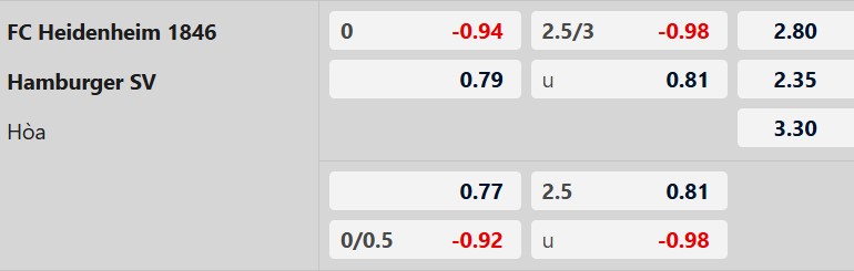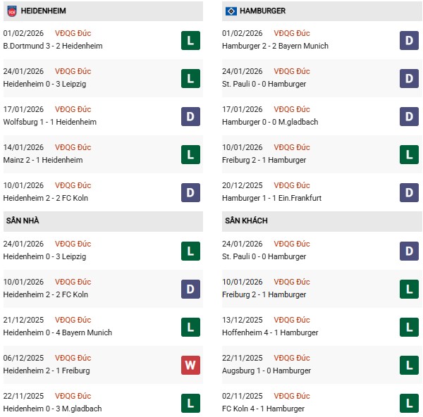 Hamburger hiện là đội đá sân khách tệ nhất Bundesliga 2025/26: chẳng những không thắng mà còn thua phần lớn (6/9). Phong độ gần đây của đại diện thành phố Cảng cũng chẳng có gì xuất sắc dù vẫn nhỉnh hơn Heidenheim. Tựu trung lại giới chuyên gia tin rằng Heidenheim sẽ giữ lại được ít nhất 1 điểm và nếu may mắn sẽ là 3 trọn vẹn.