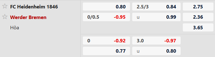Werder Bremen lại đang có bước tiến nhẹ khi thắng 2 trong 4 trận gần đây. Đáng chú ý, đội bóng miền Bắc vừa có chiến thắng đậm 4-0 ngay trên sân M'gladbach, thể hiện sức tấn công mạnh mẽ hơn hẳn so với đầu mùa. Tuy vẫn còn thiếu ổn định, song Bremen cho thấy họ có khả năng bùng nổ trong những thời điểm cần thiết. Cũng cần nhớ rằng ở lượt đi mùa trước, Bremen từng thắng Heidenheim 4-1 ngay tại Voith-Arena, kết quả cho thấy sự chênh lệch đáng kể về đẳng cấp và kinh nghiệm thi đấu đỉnh cao.