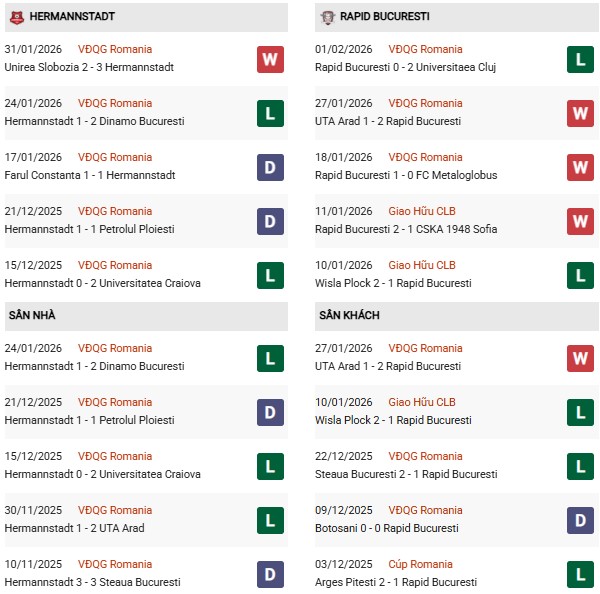 Đáng lo hơn, ngay trên sân nhà, họ thể hiện bộ mặt rất thiếu thuyết phục với chỉ 1 chiến thắng, 2 trận hòa và thua tới 7 trong 10 lần tiếp khách gần đây. Tiếp đón đối thủ mạnh như Rapid Bucuresti, Hermannstadt nhiều khả năng sẽ chủ động chơi thấp, ưu tiên phòng ngự nhằm hạn chế bàn thua.