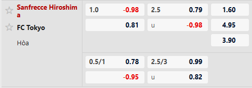 Hiệp 1 có ít nhất 1 bàn thắng: 5/6 lần đối đầu giữa 2 đội gần đây trên sân của Hiroshima đều có từ 1 bàn thắng trở lên. Tình trạng tương tự xảy ra ở 4/5 trận gần đây của Hiroshima và 3/4 trận mới nhất của FC Tokyo.