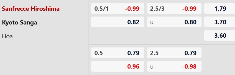 Mức chấp 3/4 bàn phản ánh ưu thế sân nhà và phong độ cao của Hiroshima. Tuy nhiên, Kyoto Sanga đang cho thấy sự ổn định và rất khó bị đánh bại trong 90 phút. Trận đấu này nhiều khả năng diễn ra cân bằng, với thế trận giằng co ở khu trung tuyến. Dù vậy, với thành tích sân nhà ấn tượng, Hiroshima vẫn có cơ sở để hướng tới chiến thắng và vượt kèo.