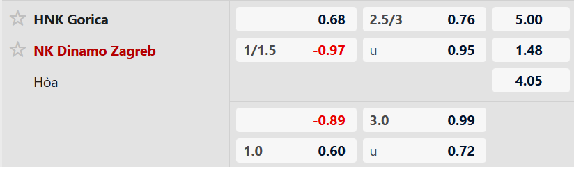 Dinamo Zagreb vẫn là đội bóng được đánh giá cao hơn nhiều ở trận đấu này với mức chấp châu Á lên tới 1 hòa. Rõ ràng, đó là mức chấp đáng tin cậy dành cho đội cửa trên, những người có 7 trận thắng kèo từ đầu mùa, còn HNK Gorica 6 trận. Chọn: Dinamo Zagreb cả trận