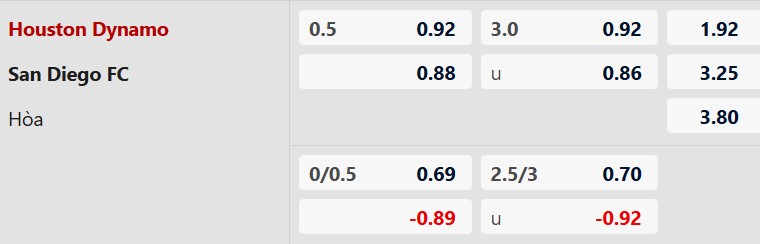 Mức chấp 1/2 bàn phản ánh đúng sự chênh lệch về điểm rơi phong độ giữa hai đội ở thời điểm hiện tại. Houston Dynamo đang có dấu hiệu đi lên với 2 chiến thắng liên tiếp trên mọi đấu trường, trong khi San Diego lại đang rơi tự do với chuỗi trận thua kéo dài. Lịch sử đấu trên sân khách của San Diego cũng rất kém cỏi khi họ thường xuyên để thua với tỷ số cách biệt. Đặt niềm tin vào đội chủ nhà là lựa chọn an toàn hơn trong bối cảnh này.