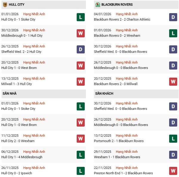 - Trên sân nhà, Hull City thắng 3, thua 5 trước Blackburn.