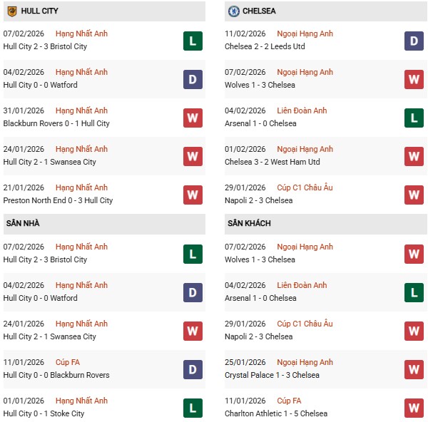 Xét về phong độ, Hull vừa không thắng 2 trận (họ hòa Watford 0-0 và thua Bristol City 2-3 đều trên sân nhà) cũng chẳng thể sánh được với Chelsea. Đúng là Chelsea vừa hòa Leeds United 2-2, nhưng nên nhớ đội bóng của tân HLV Rosenior đã giành chiến thắng trong 7 trận gần nhất.