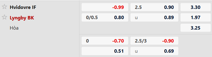 Dù phải hành quân đến sân của Hvidovre, Lyngby vẫn được đánh giá cao hơnv với tỷ lệ chấp 1/4 bàn cả trận. Phong độ sân khách của Lyngby thực sự ấn tượng, với 4 chiến thắng trong 5 chuyến xa nhà gần nhất tại giải. Ở chiều ngược lại, Hvidovre chỉ thắng 1 trong 4 trận sân nhà vừa qua. Với sự vượt trội về phong độ, Lyngby hoàn toàn có cơ sở để hướng đến trọn vẹn 3 điểm trong chuyến làm khách này.