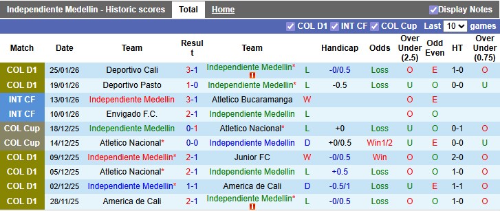 - Trên sân nhà, Ind. Medellin thắng 2, thua 4 trước Tolima.