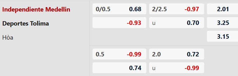 Những trận đấu gần đây giữa Independiente Medellin vs Deportes Tolima chứng kiến khá nhiều bàn thắng. Ở 3 lần gần nhất họ gặp nhau, kèo tài đều nổ. Vì thế, kịch bản tương tự có thể diễn ra ở trận đấu này, khi đôi bên đều cố gắng hướng đến thế trận cởi mở cùng một kết quả tích cực.