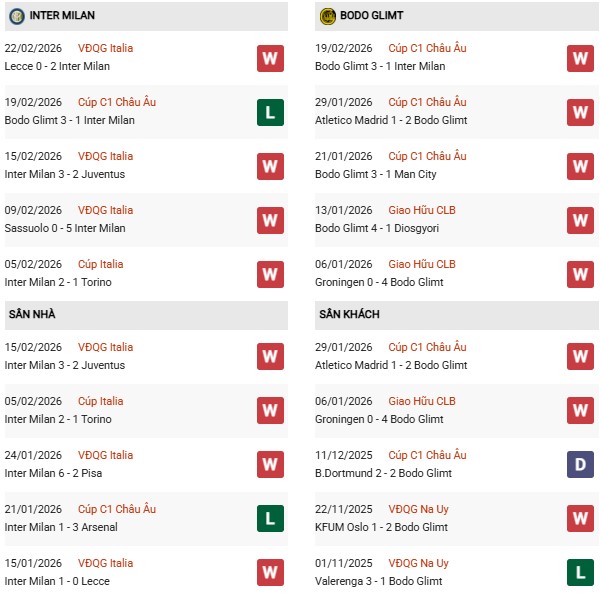 Inter Milan bước vào trận đấu này dưới sự dẫn dắt của HLV Cristian Chivu, người phải đối mặt với nhiệm vụ đầy thách thức là đảo ngược tình thế của đội nhà sau thất bại 1-3 ở trận lượt đi. Nerazzurri đã trải qua một giai đoạn khó khăn ở đấu trường châu Âu, chỉ giành được 1 chiến thắng trong 5 trận đấu Champions League gần nhất, trong đó có 4 thất bại và 1 chiến thắng. Chuỗi phong độ đáng lo ngại này khiến những người yêu mến họ không khỏi sợ hãi trước viễn cảnh bị loại bởi Bodo Glimt.