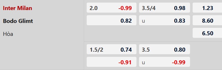 Bodo Glimt thắng theo châu Á: Bodo Glimt thắng cả 7 trận gần nhất, thắng 3/4 chuyến làm khách gần đây tại Champions League. Trong khi Inter thua 3/4 trận vừa qua trên sân khách tại sân chơi số 1 châu Âu. Trận này khó có ngoại lệ.