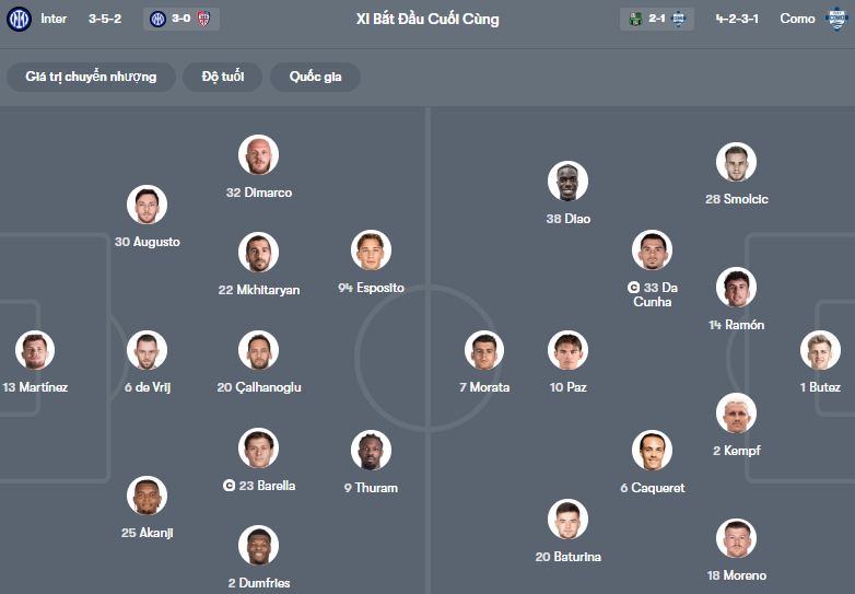 Phía bên kia chiến tuyến, Como đang có dấu hiệu hụt hơi sau giai đoạn thi đấu thăng hoa. Đội bóng của HLV Cesc Fàbregas vừa phải nhận thất bại 1-2 trước Sassuolo và trước đó cũng để thua 3-4 trước chính Inter Milan tại đấu trường quốc nội.