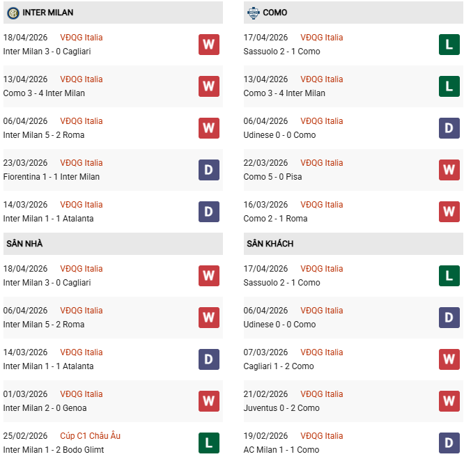 Mặc dù trận lượt đi kết thúc với tỷ số hòa không bàn thắng, nhưng trận lượt về sẽ mang tính chất sống còn. Inter Milan trên sân nhà luôn chơi tấn công rực lửa (trận gần nhất nổ Tài với 3 bàn, trận trước đó có tới 7 bàn). Khi Inter có bàn dẫn trước, Como buộc phải từ bỏ lối chơi tử thủ để tìm bàn gỡ, điều này sẽ mở ra nhiều không gian cho các tiền đạo đẳng cấp bên phía chủ nhà khai thác.