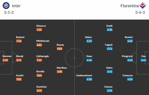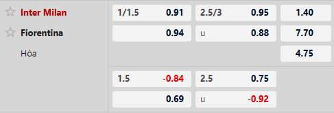 So với một Fiorentina đang thể hiện quá tệ, chẳng ngạc nhiên khi Inter Milan được đánh giá cao hơn rất nhiều cùng tỷ lệ chấp 1 1/4 bàn. 4/5 lần gặp nhau gần nhất ở Serie A, Nerazzurri toàn thắng trước The Viola. Với bối cảnh đoàn quân của Pioli gần như đã chạm đáy, chẳng ngạc nhiên nếu thầy trò Chivu có thể thuận lợi giữ 3 điểm ở lại với thánh địa của mình sau 90 phút áp đảo toàn diện.