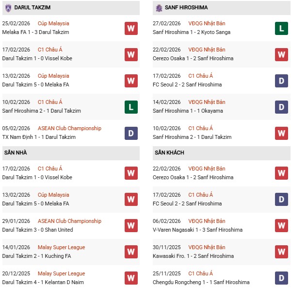 Tối thiểu 1 bàn hiệp 1: 7/8 trận gần đây của Johor Darul Takzim có từ 1 bàn thắng trở lên trong hiệp 1. Tình trạng tương tự xảy ra ở 5/6 trận vừa qua của Sanfrecce Hiroshima.