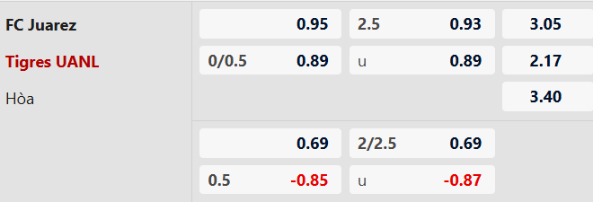 Mốc tài xỉu 2 1/2 bàn cho thấy đánh giá trận đấu có thể xuất hiện khoảng 2-3 bàn thắng. Các trận đấu gần đây của Juarez thường có khá nhiều bàn thắng do hàng thủ thiếu chắc chắn. Trong khi đó, Tigres cũng sở hữu hàng công chất lượng và có khả năng tận dụng cơ hội tốt. Với thế trận cởi mở có thể xảy ra, trận đấu được kỳ vọng sẽ có bàn thắng từ cả hai đội.