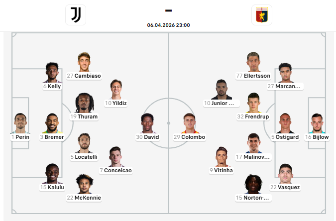 Juventus bước vào trận đấu với lợi thế sân nhà cùng đội hình có chiều sâu và kinh nghiệm hơn hẳn Genoa. Lối chơi của “Bà đầm già thành Turin” vẫn dựa nhiều vào sự chắc chắn nơi hàng thủ và khả năng kiểm soát tuyến giữa, giúp họ duy trì thế trận ổn định trong phần lớn thời gian.