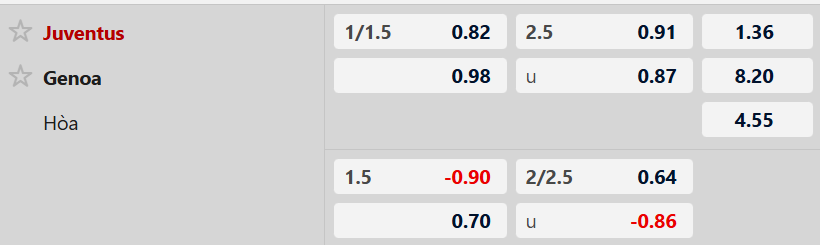 Với việc Genoa thua kèo ở 2/3 trận sân khách gần đây và Juventus thắng kèo ở hầu hết các trận thắng đậm tại sân nhà, đặt niềm tin vào đội cửa trên là có cơ sở. Chọn Juventus