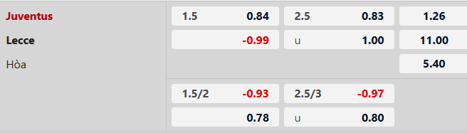 Tối đa 2 bàn: 6/8 trận gần đây của Lecce chỉ có tối đa 2 bàn. 3/4 trận vừa qua của Juventus số lần lưới rung cũng không lên được tới 3.