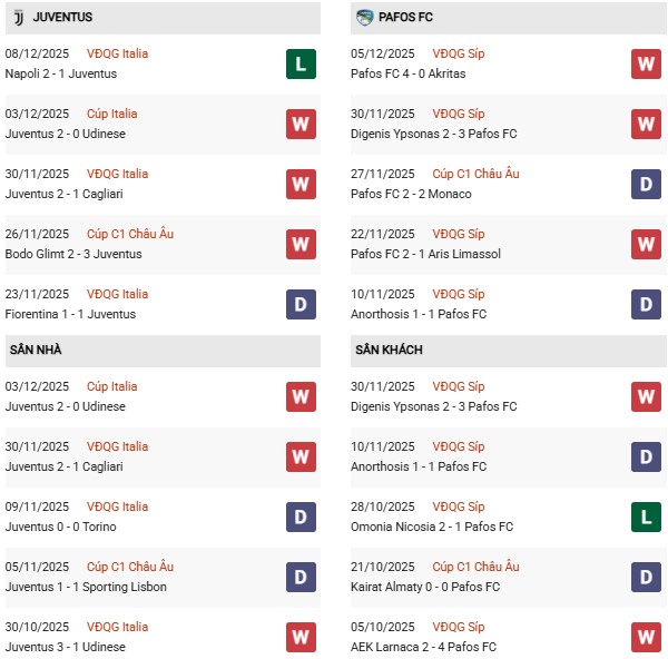 Phong độ của Juventus vs Pafos không có sự chênh lệch lớn. Trong khi Juventus chỉ thua 1/5 trận vừa qua thì Pafos bất bại ở cùng thời gian. Juventus có lợi thế sân nhà và sở hữu đội hình chất lượng hơn rất nhiều. Dù thế cũng chẳng nên coi thường Pafos. CLB này từng hòa Monaco hay Kairat Almaty, đánh bại Villarreal ở Champions League mùa này. Có khả năng, Pafos sẽ tạo ra bất ngờ ở thành Turin.