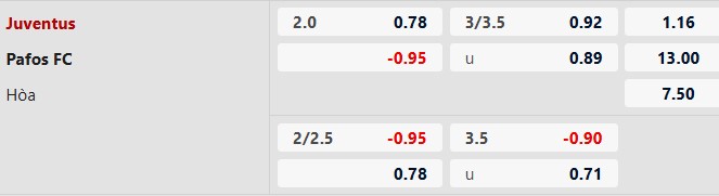 DỰ ĐOÁN: Juventus 2-2 Pafos