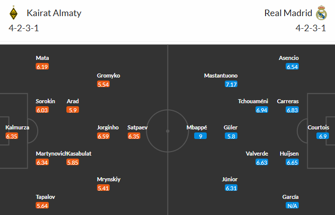 Nhận định Kairat Almaty vs Real Madrid, 23h45 ngày 30/9, vòng Phân hạng Cúp C1 châu Âu, sân Central. Sức mạnh nhân sự, kinh nghiệm và vị thế ở sân chơi châu Âu của Real Madrid vẫn là ưu thế quá lớn.