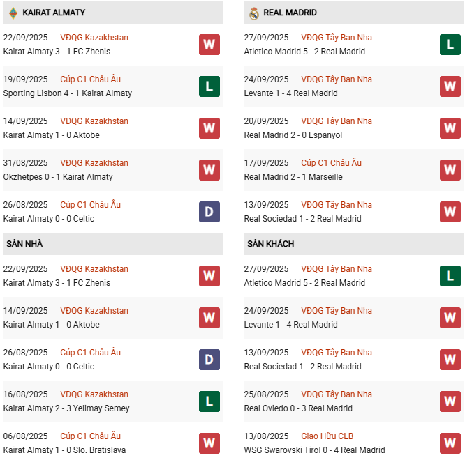 DỰ ĐOÁN: Kairat Almaty 0-4 Real Madrid