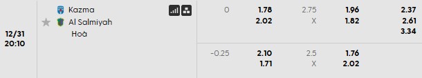 Nhận định Kazma vs Al Salmiya, 20h10 ngày 31/12, vòng 10 VĐQG Kuwait, sân Al-Sadaqua Walsalam. Trong bối cảnh Al Salmiya không quá mạnh khi thi đấu xa nhà, lựa chọn Kazma ở kèo đồng banh vẫn là phương án an toàn hơn.