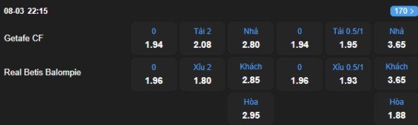 Dù Getafe vừa thắng Real Madrid, nhưng trước một Betis chơi kỷ luật và đầy già rơ dưới thời Pellegrini, chủ nhà sẽ khó lòng có được trọn vẹn niềm vui. Với tỷ lệ kèo đồng banh (0), lựa chọn Real Betis với bản lĩnh sân khách đang lên cao là phương án an toàn hơn.