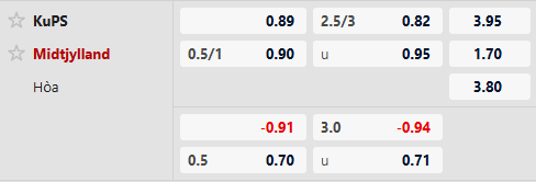 Hàng công của KuPS chơi chẳng hề tồi mùa này và cũng vừa có 3 bàn ở trận quốc nội gần nhất. Hiệu suất của đội khách Midtjylland còn xuất sắc hơn rất nhiều với 18 bàn thắng sau 6 trận liên tiếp, trung bình 3 bàn mỗi 90 phút. Vậy nên, với tỷ lệ tài xỉu 2 3/4, kèo đấu này hoàn toàn có thể về Tài chung cuộc.