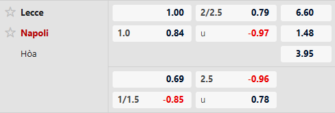 Napoli được đánh giá cao hơn hẳn với kèo chấp 1 hòa. Lecce chỉ thắng 1 trong 15 trận đấu gần nhất tại Via del Mare. Trong khi đó, đẳng cấp và bản lĩnh của nhà ĐKVĐ giúp Napoli sẽ giành chiến thắng trước Lecce như mọi khi.