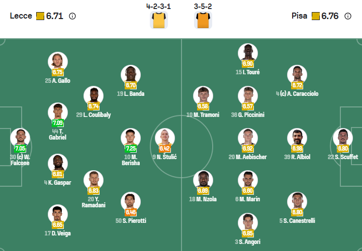 Tuy vậy, phong độ của Pisa khi bước vào trận đấu này không mấy khả quan. Mùa này, Pisa chỉ thắng được đúng 1 trận. Họ có được 10 điểm nhờ 7 trận hòa. Pisa cũng chỉ ghi được 10 bàn giống Lecce nhưng xu hướng của họ là kềm tỏa đối phương với hy vọng lấy từng điểm một.