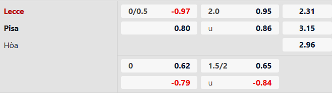Phong độ của đôi bên không có quá nhiều sự chênh lệch trong thời gian gần đây. Pisa đang tỏ ra tương đối khó bị đánh bại khi phải làm khách với 3 trận hòa liên tiếp tại Serie A. Trong bối cảnh Lecce cũng không quá xuất sắc khi được thi đấu trên sân nhà, trận đấu tới nhiều khả năng sẽ khép lại với kết quả bất phân thắng bại cùng 1 điểm chia đều cho cả đôi bên.