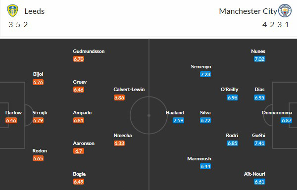 Đội hình dự kiến Leeds vs Man City:
