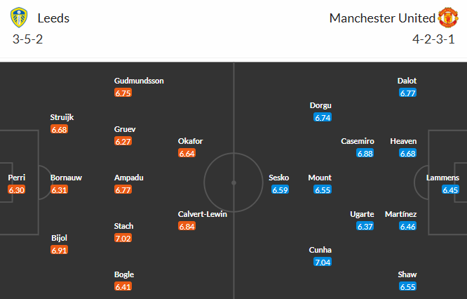 Về phần Leeds, đội bóng chuyển từ Championship lên Premier League lại đang gây ấn tượng mạnh với 6 trận liền không thua. Trong 6 trận đấu ấy, họ 2 lần cầm hòa nhà đương kim vô địch Premier League Liverpool, thậm chí còn đánh bại "ông lớn" Chelsea với tỷ số cách biệt 3-1. Riêng trên sân nhà, Leeds đã ghi tới 10 bàn chỉ trong 3 trận gần nhất. Với thành tích ấn tượng như vậy, Leeds đủ khả năng kiếm được ít nhất 1 điểm từ tay MU vốn là "khắc tinh" của họ.